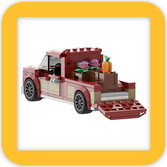 myBrickZ 0004 Roter Pickup mit Marktständen