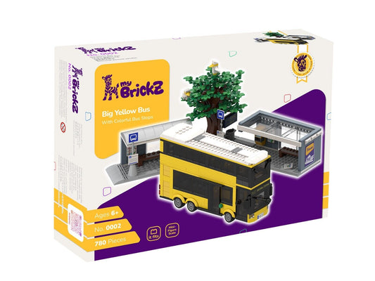 myBrickZ 0002 Gelber Doppelstockbus mit Haltestellen